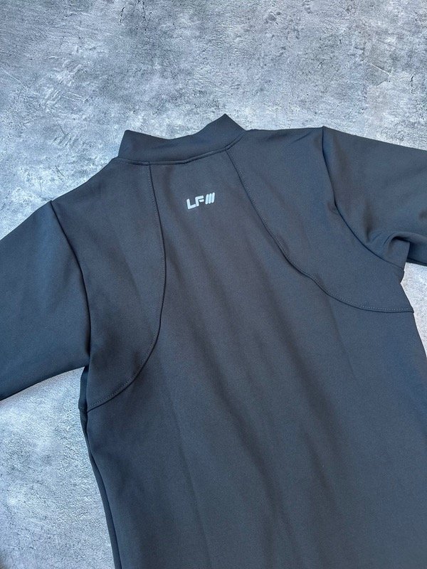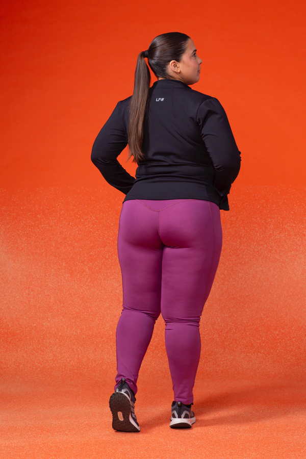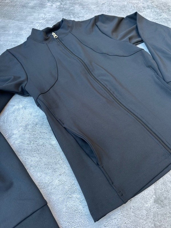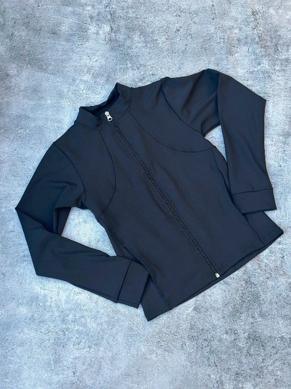 Lycra Sport con cuello alto y bolsillos laterales. Recortes curvos en delantero y espalda que acompaña la silueta.