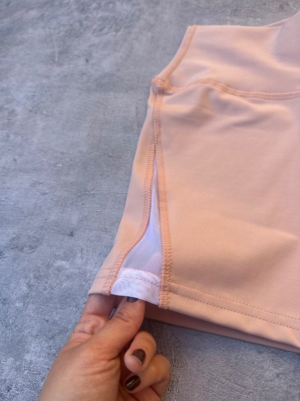 Lycra Sport. Cintura alta. Combinado con tul a contratono en los costados delanteros.
