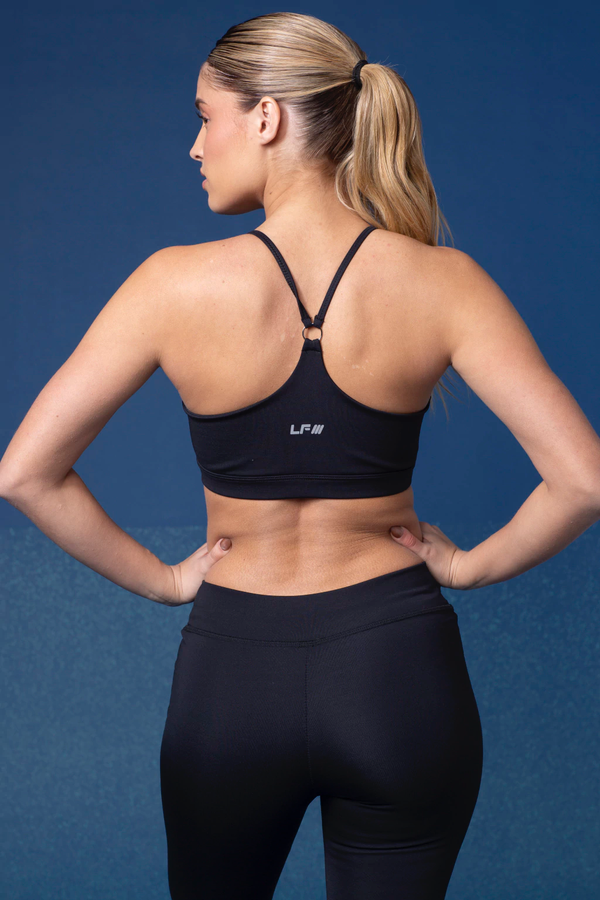Lycra Sport, doble tela para mayor ajuste y soporte. Con argolla en la espalda y breteles finos.